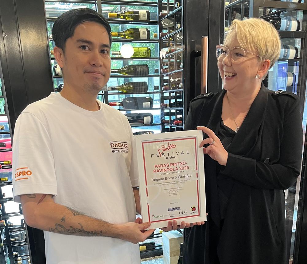 Tänä vuonna yleisö ei äänestänyt yhtä annosta vaan kokonaisvalikoimaa, tunnelmaa ja palvelua. Töölöläinen ravintola Dagmar Bistro & Wine Bar nappasi tänä vuonna yleisön äänet parhaaksi pintxoravintolaksi 2025. Tuomariston korviin kuuluikin runsaasti yleisöpalautetta hyvästä palvelusta ja viihtyisästä miljööstä.